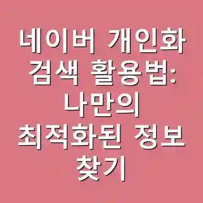 오늘날 정보의 홍수 속에서 원하는 정보를 더 빠르고 정확하게 찾기 위해서는 개인화된 검색의 활용이 필수적입니다. 네이버 개인화 검색은 사용자의 검색 습관과 선호도를 분석하여 맞춤형 검색 결과를 제공하는 강력한 도구입니다. 이를 통해 더욱 의미 있고 유용한 정보를 손쉽게 얻을 수 있습니다. 이 글을 통해 네이버 개인화 검색의 활용 방법과 이점을 알아보고, 나만의 검색 환경을 최적화하는 방법을 배워보세요.