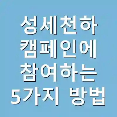 성세천하 캠페인에 참여하기 위한 5가지 방법은 캠페인 이해, 온라인 및 오프라인 참여, 홍보, 자원봉사 등이 있습니다. 각 방법을 통해 개인의 사회적 책임을 실천하고, 공동체에 긍정적 영향을 미칠 수 있습니다. 일상 속 작은 실천이 사회적 변화로 이어질 수 있음을 명심합시다.